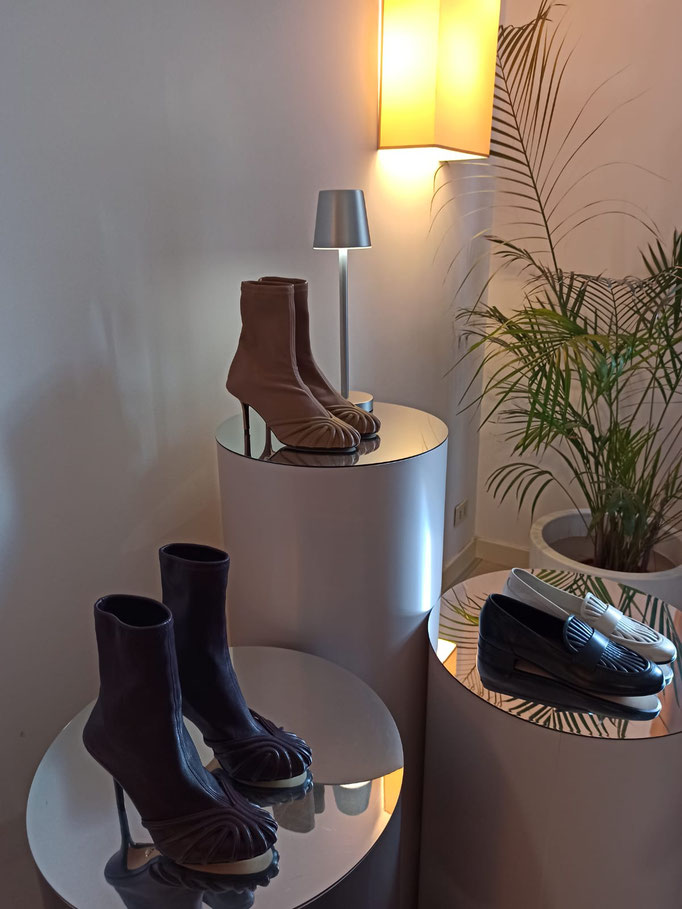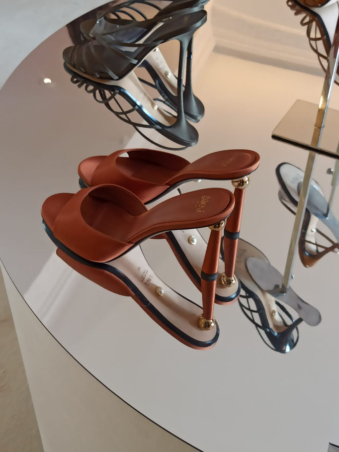 Per questa edizione della Milano Fashion Week hanno presentato linee moderne e delicate, un’estetica sofisticata per una femminilità senza tempo. Questo è ciò che emerge dalla collezione primavera/estate 2026 del brand. Possiamo trovare l’evoluzione del sandalo gabbia, i sandali infradito proposti in diverse altezze e materiali, i mocassini dal design essenziale, realizzati in pelle morbida a grana fine. Sono anche presenti i tacchi scultorei da 35 e 80 mm e nuove platform. La palette richiama i toni caldi dell’estate con il cacao, l’havana, l’avorio, l’oro e i colori moss e skin. Per la linea Bridal, Alevì Milano propone modelli originali ed essenziali: candido satin e tonalità nude second skin declinate su diverse altezze, arricchite da applicazioni di crystal strass. Infine, il dettaglio della perla dorata, firma distintiva del brand, viene reinterpretato in una nuance oro-bronzata dal carattere estivo.